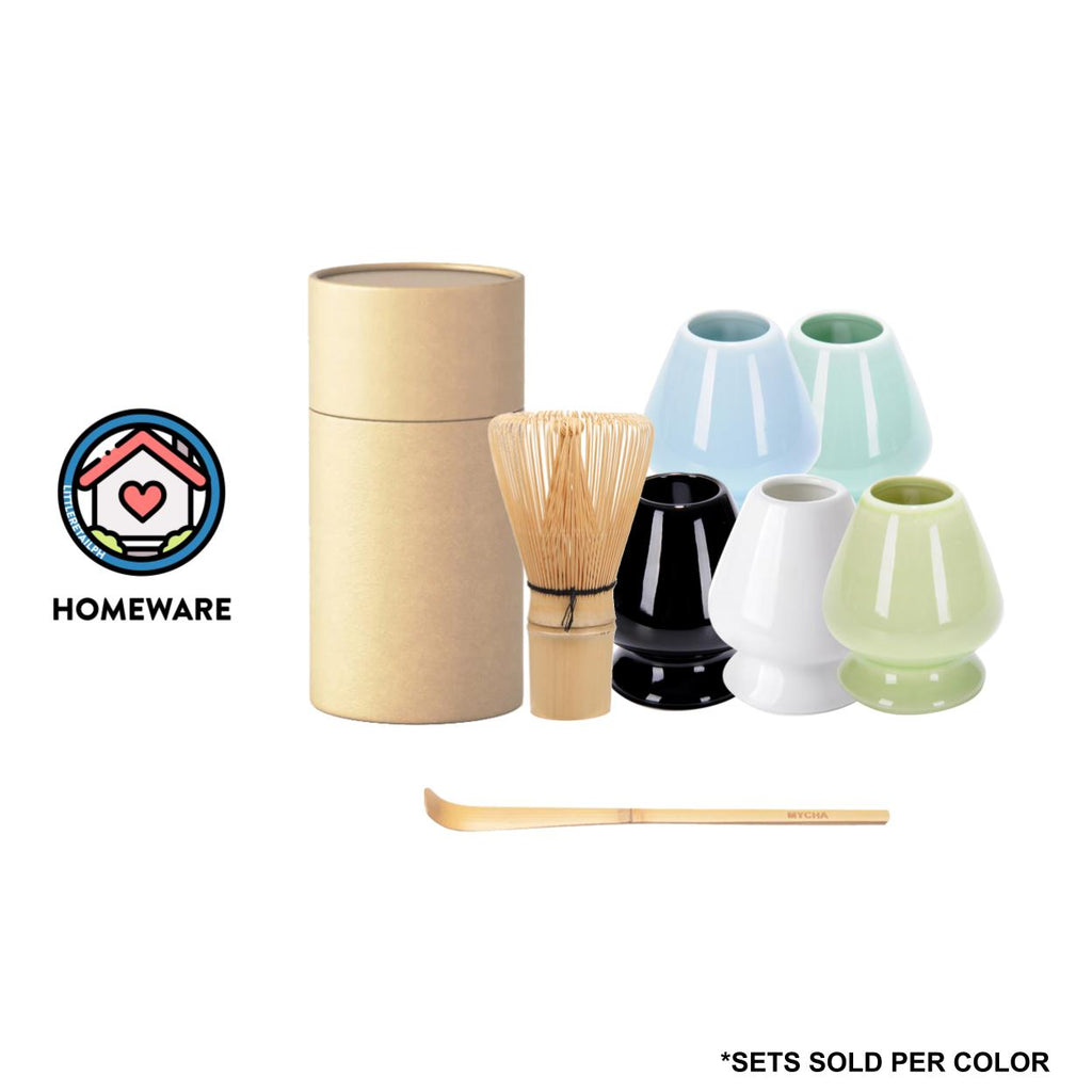 Bamboo Matcha Whisk Set in Kraft Tube - Whisk, Hooked Bamboo Scoop, Ceramic Holder